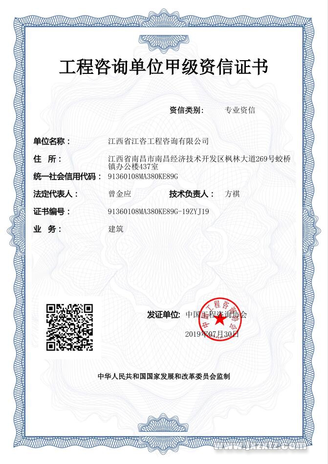 工程咨询甲级资信证书(建筑 专业咨询)